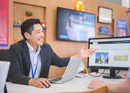 お客様をお迎えして、条件のヒアリングから物件の提案までを行います。気になる物件があればそのまま内見に向かいます。内見終了後は、店舗に戻り感想を伺ったり見積もりを作成してより具体的に話を進めます。成約となれば申込の手続きに移ります。